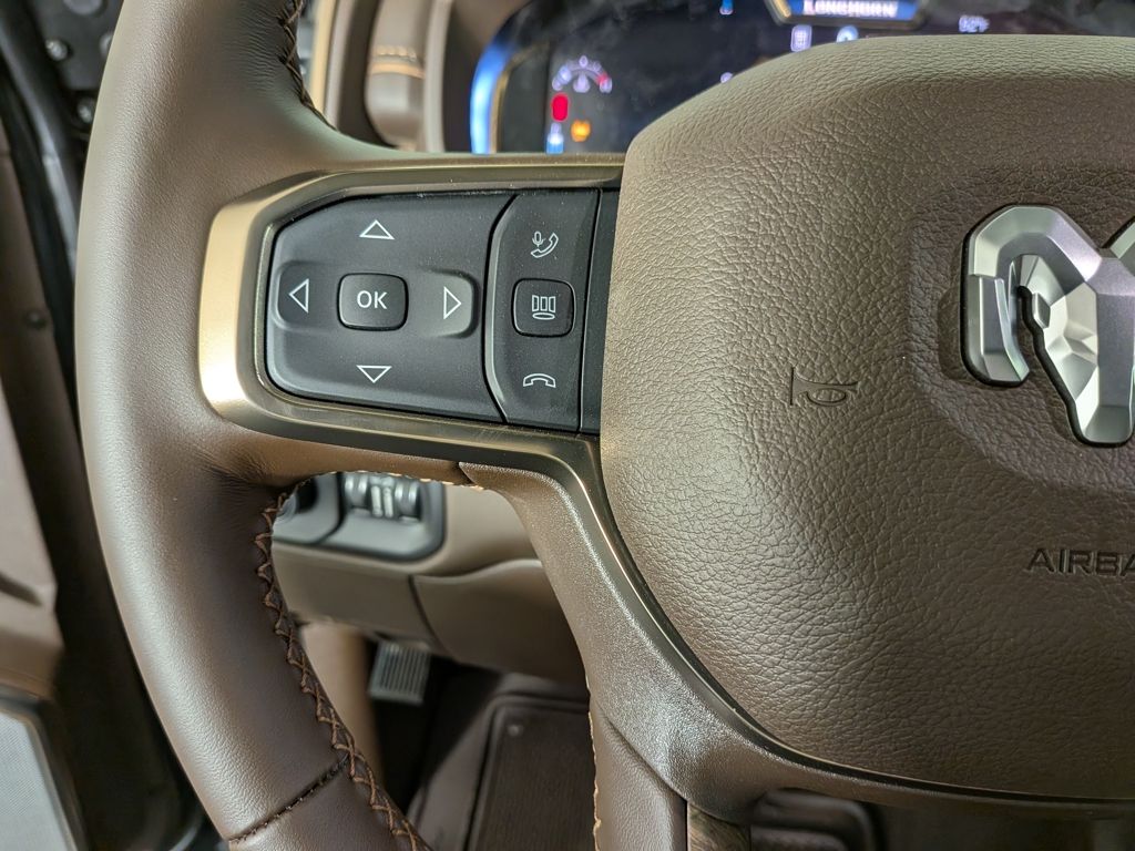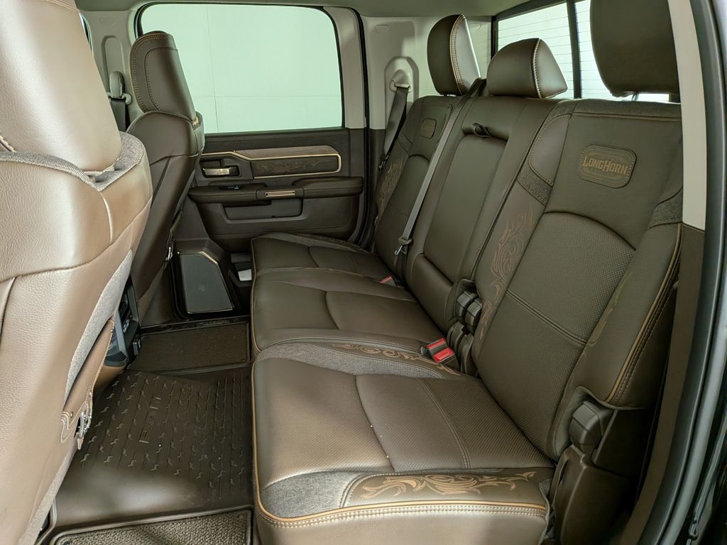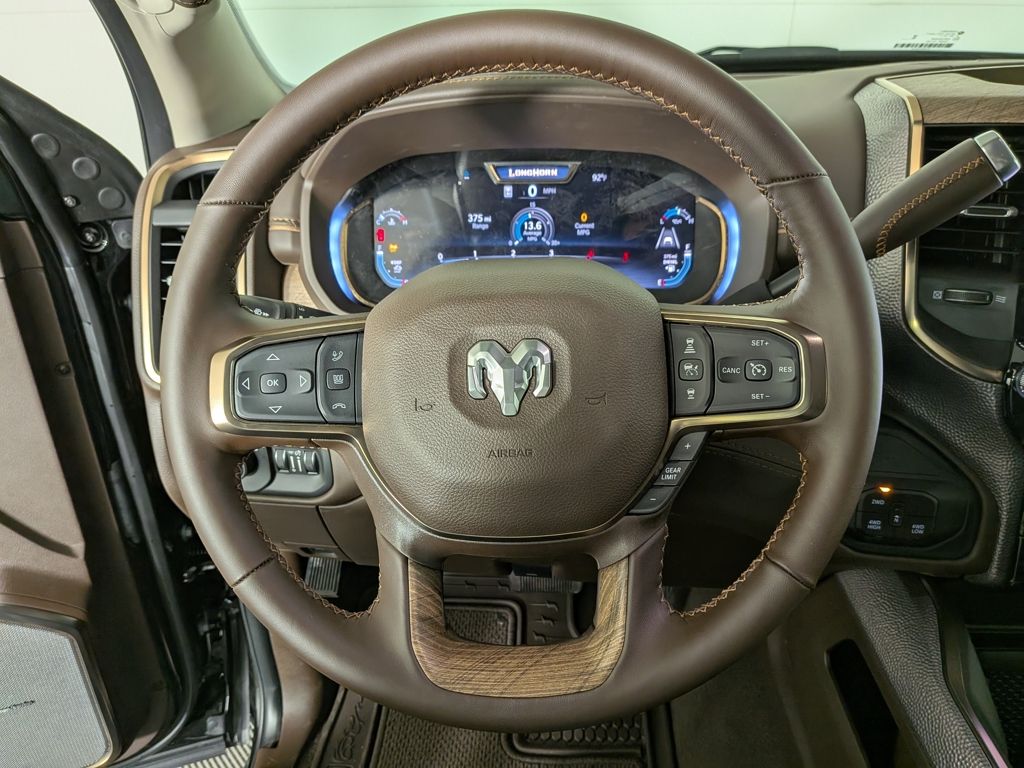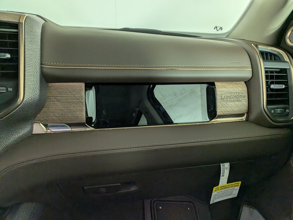 We look forward to serving you! 5th Wheel/Gooseneck Towing Prep Group (Pickup Box, Vendor Painted Cargo Box, and Vendor Painted Cargo Box Tracking), Cold Weather Group (Engine Block Heater and MOPAR Winter Front Grille Cover), Longhorn Level 1 Equipment Group (Anti-Spin Differential Rear Axle, Center Stop Lamp w/Cargo View Camera, Digital Rearview Mirror, LED Bed Lighting, MOPAR Spray In Bedliner, Power Deployable Running Boards, Surround View Camera System, Trailer Reverse Guidance, and Trailer Tire Pressure Monitoring System), Quick Order Package 24K Longhorn (I/P Aluminum Litho Bezels w/Real Wood #1, Longhorn Badge, Longhorn Instrument Cluster Theme 3, Luxury Front & Rear Floor Mats, Premium Filigree Leather Seats, and Warm Chrome Key Fob), Safety Group (Active Lane Management System, Adaptive Steering System, Drowsy Driver Detection, and Traffic Sign Recognition), 17 Speakers, 3.42 Axle Ratio, 4-Wheel Disc Brakes, ABS brakes, Adjustable pedals, Air Conditioning, Alloy wheels, AM/FM radio: SiriusXM with 360L, Apple CarPlay/Android Auto, Audio memory, Auto High-beam Headlights, Auto-dimming door mirrors, Auto-dimming Rear-View mirror, Automatic temperature control, Black Wheel Center Hub, Bodyside moldings, Brake assist, Bumpers: body-color, Clearance Lamps, Compass, Delay-off headlights, Driver door bin, Driver vanity mirror, Dual front impact airbags, Dual front side impact airbags, Electronic Stability Control, Front anti-roll bar, Front Bucket Seats, Front Center Armrest w/Storage, Front dual zone A/C, Front fog lights, Front License Plate Bracket, Front reading lights, Fully automatic headlights, Garage door transmitter, Genuine wood console insert, Genuine wood dashboard insert, Genuine wood door panel insert, harman/kardon® Speakers, Heated door mirrors, Heated front seats, Heated rear seats, Heated steering wheel, Illuminated entry, Leather steering wheel, Low tire pressure warning, Manufacturer's Statement of Origin, Memory seat, Navigation System, Occupant sensing airbag, Outside temperature display, Overhead airbag, Overhead console, Panic alarm, ParkView Rear Back-Up Camera, Passenger door bin, Passenger vanity mirror, Pedal memory, Power door mirrors, Power driver seat, Power passenger seat, Power steering, Power Sunroof, Power windows, Radio data system, Radio: Uconnect 5 Nav w/14.4" Display, Rain sensing wipers, Rear anti-roll bar, Rear reading lights, Rear seat center armrest, Rear step bumper, Rear window defroster, Remote keyless entry, Security system, Speed control, Split folding rear seat, Steering wheel mounted audio controls, Tachometer, Tilt steering wheel, Traction control, Trip computer, Turn signal indicator mirrors, Ultra Premium Leather Seats, Variably intermittent wipers, Ventilated front seats, Voltmeter, and Wheels: 20" x 8" Diamond Cut AluminuM.