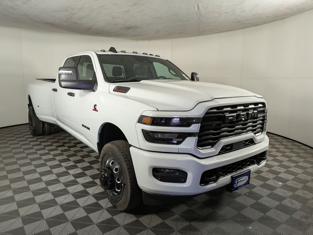We look forward to serving you! Big Horn Level 1 Plus Equipment Group (12" Touchscreen Display, 2 Way Rear Headrest Seat, 2nd Row in Floor Storage Bins, 4 Way Front Headrests, 40/20/40 Split Bench Seat, 4G LTE Wi-Fi Hot Spot, 9 Alpine Speakers with Subwoofer, Air Conditioning ATC with Dual Zone Control, Alexa Built-in, Apple CarPlay, Auto Power-Folding Mirrors, Auto-Dimming Rear-View Mirror, Black Exterior Mirrors, Cloth 40/20/40 Premium Bench Seat, Connected Travel and Traffic Services, Connectivity - US/Canada, Disassociated Touchscreen Display, Dual Glove Boxes, Emergency Vehicle Alert System (EVAS), Exterior Mirrors Courtesy Lamps, Exterior Mirrors with Heating Element, Exterior Mirrors with Supplemental Signals, Foam Bottle Insert (door Trim Panel), Folding Flat Load Floor Storage, Footwell Courtesy Lamp, For Details Visit DriveUconnect.com, For More Info, Call 800-643-2112, Forward and Reverse Utility Lights, Front Armrest with Cupholders, Front Center Seat Cushion Storage, Front Seat Back Map Pockets, Global Telematics Box Module, Glove Box Lamp, Google Android Auto, GPS Antenna Input, GPS Navigation, HD Radio, Integrated Voice Command with Bluetooth, LED Bed Lighting, Locking Lower Glove Box, Luxury Steering Wheel, Manual Adjust 4-Way Front Passenger Seat, Mirror Running Lights, MOPAR Deployable Bed Step, MOPAR Spray in Bedliner, Off-Road Information Pages, Power 2-Way Driver Lumbar Adjust, Power Adjust 8-Way Driver Seat, Power Adjust Mirrors, Power Heated Fold Telescopic Mirrors, Power Telescoping Mirrors, Power-Adjustable Convex Aux Mirrors, Radio: Uconnect 5 Navigation with 12.0" Display, Rear 60/40 Folding Seat, Rear Dome with on/Off Switch Lamp, Remote Start System, Remote USB Port - Charge Only, Selectable Tire Fill Alert, SiriusXM Radio Service, SiriusXM with 360L, Steering Wheel Mounted Audio Controls, Storage Tray, and Trailer Tow Pages), Cold Weather Group (Engine Block Heater and MOPAR Winter Front Grille Cover), Heated Seats and Wheel Group (Heated Front Seats and Heated Steering Wheel), Max Tow Package (5th Wheel/Gooseneck Towing Prep Group), Night Edition (Black Exterior Truck Badging, Black Interior Accents, Black Wheel Center Hub, Body Color Grille Surround, Gloss Black Nostrils/Molded in Color Black Grille, Painted Front Bumper, and Painted Rear Bumper), Quick Order Package 24Z Big Horn, 4-Wheel Disc Brakes, 50 Gallon Fuel Tank, 6 Speakers, 6000# Front Axle with Hub Extension, ABS brakes, Air Conditioning, Alloy wheels, AM/FM radio: SiriusXM, Apple CarPlay/Android Auto, Box and Rear Fender Clearance Lamps, Brake assist, Bumpers: chrome, Center Hub, Clearance Lamps, Cloth 40/20/40 Bench Seat, Compass, Delay-off headlights, Driver door bin, Dual front impact airbags, Dual front side impact airbags, Dual Rear Wheels, Electronic Stability Control, Front anti-roll bar, Front Center Armrest w/Storage, Front fog lights, Front License Plate Bracket, Front reading lights, Fully automatic headlights, Heated door mirrors, Illuminated entry, Low tire pressure warning, Manual Adjust 4-Way Driver Seat, Manufacturer's Statement of Origin, MOPAR Front and Rear Rubber Floor Mats, Nexen Brand Tires, Occupant sensing airbag, Outside temperature display, Overhead airbag, Overhead console, Panic alarm, ParkView Rear Back-Up Camera, Passenger door bin, Passenger vanity mirror, Power door mirrors, Power steering, Power windows, Radio data system, Radio: Uconnect 5 with 8.4" Display, Rear Folding Seat, Rear seat center armrest, Rear step bumper, Rear Wheelhouse Liners, Rear window defroster, Remote keyless en All customers may not qualify for all rebates. Price includes: $1000 - 2026 National Bonus Cash . Exp