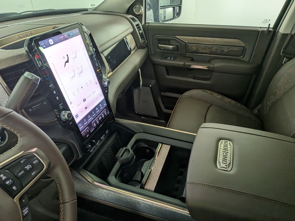 We look forward to serving you! Cold Weather Group (Engine Block Heater and MOPAR Winter Front Grille Cover), Longhorn Level 1 Equipment Group (Active Lane Management System, Adaptive Steering System, CTR Stop Lamp w/Cargo View Camera, Digital Rearview Mirror, Drowsy Driver Detection, LED Bed Lighting, MOPAR Spray In Bedliner, Power Deployable Running Boards, Surround View Camera System, Traffic Sign Recognition, Trailer Reverse Guidance, and Trailer Tire Pressure Monitoring System), Max Tow Package (5th Wheel/Gooseneck Towing Prep Group and Auto Level Rear Air Suspension), Quick Order Package 24K Longhorn (I/P Aluminum Litho Bezels w/Real Wood #1, Longhorn Badge, Longhorn Instrument Cluster Theme 3, Luxury Front & Rear Floor Mats, Premium Door Trim Panel, Premium Filigree Leather Seats, and Warm Chrome Key Fob), 17 Speakers, 4-Wheel Disc Brakes, 50 Gallon Fuel Tank, 6000# Front Axle w/Hub Ext, ABS brakes, Adjustable pedals, Air Conditioning, Alloy wheels, AM/FM radio: SiriusXM with 360L, Apple CarPlay/Android Auto, Audio memory, Auto High-beam Headlights, Auto-dimming door mirrors, Auto-dimming Rear-View mirror, Automatic temperature control, Black Wheel Center Hub, Bodyside moldings, Box & Rear Fender Clearance Lamps, Brake assist, Bumpers: body-color, Center Hub, Clearance Lamps, Compass, Delay-off headlights, Driver door bin, Driver vanity mirror, Dual front impact airbags, Dual front side impact airbags, Dual Rear Wheels, Electronic Stability Control, Front anti-roll bar, Front Bucket Seats, Front Center Armrest w/Storage, Front dual zone A/C, Front fog lights, Front License Plate Bracket, Front reading lights, Fully automatic headlights, Garage door transmitter, Genuine wood console insert, Genuine wood dashboard insert, Genuine wood door panel insert, harman/kardon® Speakers, Heated door mirrors, Heated front seats, Heated rear seats, Heated steering wheel, Illuminated entry, Leather steering wheel, Low tire pressure warning, Manufacturer's Statement of Origin, Memory seat, Navigation System, Nexen Brand Tires, Occupant sensing airbag, Outside temperature display, Overhead airbag, Overhead console, Panic alarm, ParkView Rear Back-Up Camera, Passenger door bin, Passenger vanity mirror, Pedal memory, Power door mirrors, Power driver seat, Power passenger seat, Power steering, Power Sunroof, Power windows, Radio data system, Radio: Uconnect 5 Nav w/14.4" Display, Rain sensing wipers, Rear reading lights, Rear seat center armrest, Rear step bumper, Rear window defroster, Remote keyless entry, Security system, Speed control, Split folding rear seat, Steering wheel mounted audio controls, Tachometer, Tilt steering wheel, Traction control, Trip computer, Turn signal indicator mirrors, Ultra Premium Leather Seats, Variably intermittent wipers, Ventilated front seats, Voltmeter, Wheels: 17" x 6.0" Polished Aluminum, and Wheels: 20" x 8.0" Diam Cut Alum w/Blk Pt PocK.