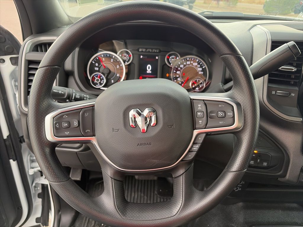 We look forward to serving you! Quick Order Package 25A Tradesman, Tradesman Level 1 Equipment Group (Black Exterior Mirrors, Black Power Heated Fold Telescope Mirrors, Exterior Mirrors Courtesy Lamps, Manual Folding Exterior Mirrors, Mirror Running Lights, Power Adjust Mirrors, Power-Adjustable Convex Aux Mirrors, Rear Window Defroster, Trailer Brake Control, and Trailer Light Check), 11.50" Dual Wheels Rear Axle, 2 Way Rear Headrest Seat, 4-Wheel Disc Brakes, 40/20/40 Split Bench Seat, 4G LTE Wi-Fi Hot Spot, 6 Speakers, ABS brakes, Air Conditioning, AM/FM radio: SiriusXM, Apple CarPlay, Apple CarPlay/Android Auto, Black Tubular Side Steps, Black Wheel Center Hub, Bright Front Bumper, Center Hub, Chrome Grille Surround, Compass, Connectivity - US/Canada, Delay-off headlights, Driver door bin, Dual front impact airbags, Dual Rear Wheels, Electronic Stability Control, Emergency communication system: RAM Connect, For Details, Visit DriveUconnect.com, Front anti-roll bar, Front Center Armrest w/Storage, Front fog lights, Front License Plate Bracket, Front reading lights, Fully automatic headlights, Google Android Auto, GPS Antenna Input, HD Vinyl 40/20/40 Split Bench Seat, Illuminated entry, Manual Adjust 4-Way Driver Seat, Manual Adjust 4-Way Front Passenger Seat, Manufacturer's Statement of Origin, Nexen Brand Tires, Occupant sensing airbag, Outside temperature display, Overhead console, Panic alarm, ParkView Rear Back-Up Camera, Passenger door bin, Passenger vanity mirror, Power steering, Power windows, Radio data system, Rear anti-roll bar, Rear Folding Seat, Remote keyless entry, Remote USB Port - Charge Only, Speed control, Storage Tray, Tachometer, Tilt steering wheel, Traction control, Variably intermittent wipers, Voltmeter, Wheels: 17" x 6.0" Polished Aluminum, Wheels: 18" x 8.0" Polished Aluminum, and Wheels: 18" x 8.0" Steel PainteD.