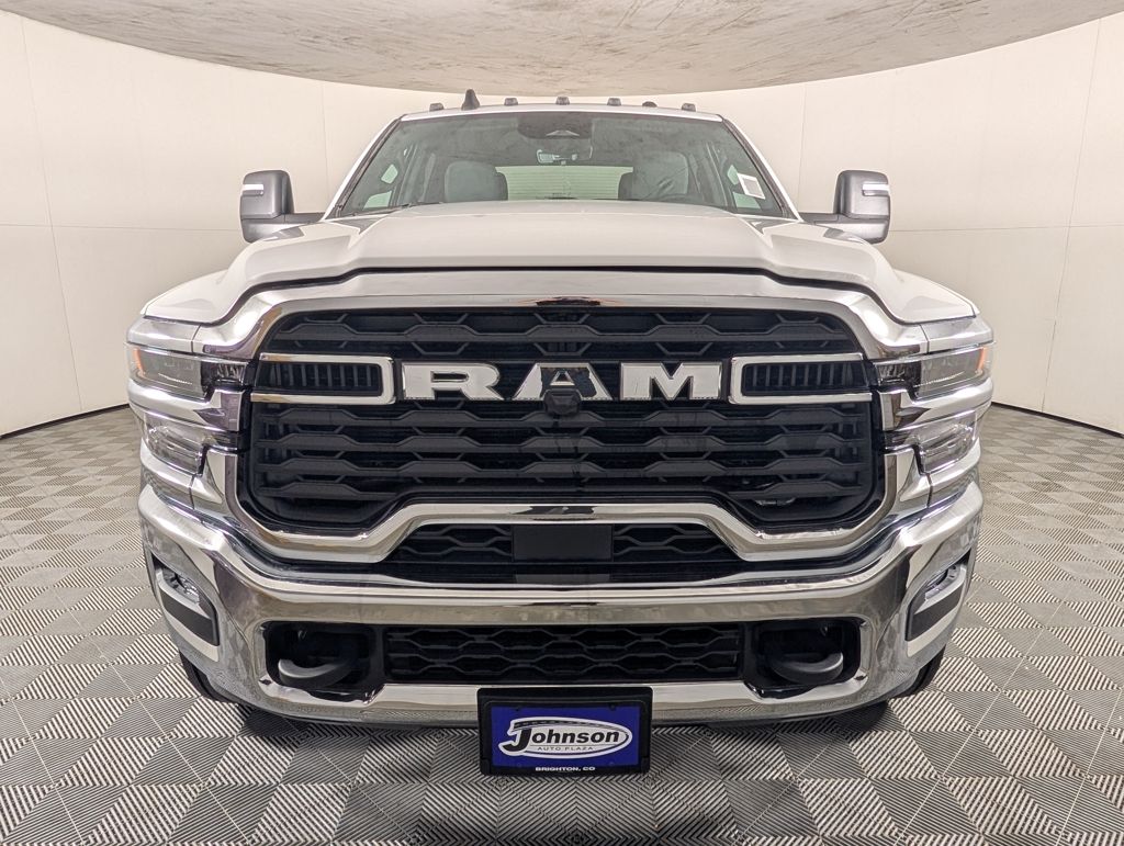 We look forward to serving you! Chrome Appearance Group (19.5" x 6.0" Steel Wheels, Bright Front Bumper, Center Hub, Chrome Grille Surround, and Matte Black Mesh w/Chrome Grille), Cold Weather Group (Engine Block Heater and MOPAR Winter Front Grille Cover), Heavy Duty Snow Plow Prep Group (Upgraded Rear HD Stabilizer Bar), Quick Order Package 25A Tradesman, Tradesman Level 1 Equipment Group (Black Exterior Mirrors, Black Power Heated Fold Telescope Mirrors, Exterior Mirrors Courtesy Lamps, Exterior Mirrors w/Heating Element, Exterior Mirrors w/Supplemental Signals, Manual Folding Exterior Mirrors, Manual Telescoping Mirrors, Mirror Running Lights, Power Adjust Mirrors, Power-Adjustable Convex Aux Mirrors, Rear Window Defroster, Trailer Brake Control, and Trailer Light Check), 4-Wheel Disc Brakes, 4.44 Axle Ratio, 40/20/40 Split Bench Seat, 4G LTE Wi-Fi Hot Spot, 6 Speakers, ABS brakes, Air Conditioning, AM/FM radio: SiriusXM, Apple CarPlay, Apple CarPlay/Android Auto, Compass, Connectivity - US/Canada, Delay-off headlights, Driver door bin, Dual front impact airbags, Dual rear wheels, Electronic Stability Control, Emergency communication system: RAM Connect, For Details, Visit DriveUconnect.com, Front anti-roll bar, Front Armrest w/Cupholders, Front Center Armrest w/Storage, Front fog lights, Front License Plate Bracket, Front reading lights, Fully automatic headlights, Global Telematics Box Module (TBM), Google Android Auto, GPS Antenna Input, Heavy Duty Front Suspension Group, Integrated Voice Command w/Bluetooth, Manual Adjust 4-Way Driver Seat, Manual Adjust 4-Way Front Passenger Seat, Manual DPF Regeneration, Manufacturer's Statement of Origin, Occupant sensing airbag, Outside temperature display, Overhead console, Panic alarm, ParkView Rear Back-Up Camera, Passenger door bin, Passenger vanity mirror, Power steering, Power Take-Off Right/Left, Power windows, Radio data system, Radio: Uconnect 5 w/8.4" Display, Rear anti-roll bar, Rear Folding Seat, Rear reading lights, Remote keyless entry, Remote USB Port - Charge Only, Speed control, Tachometer, Temperature & Compass Gauge, Tilt steering wheel, Traction control, Variably intermittent wipers, Voltmeter, and Wheels: 19.5" x 6.0" Black Painted SteeL.