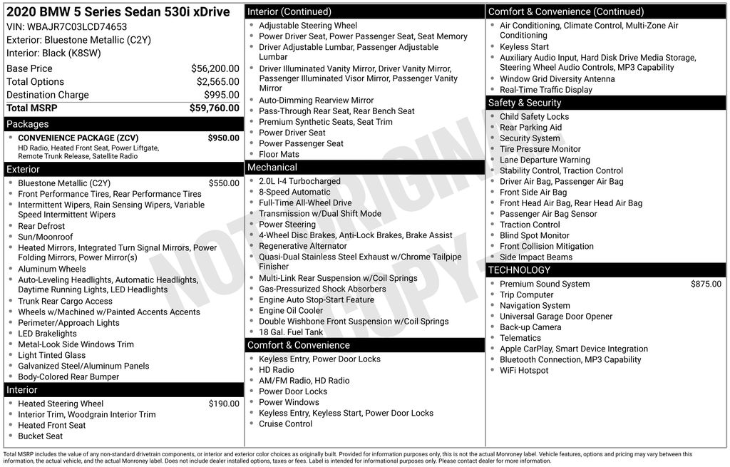 2020 BMW 5 Series 530i xDrive Bluestone Metallic AWD 2.0L 4-Cylinder 8-Speed Automatic