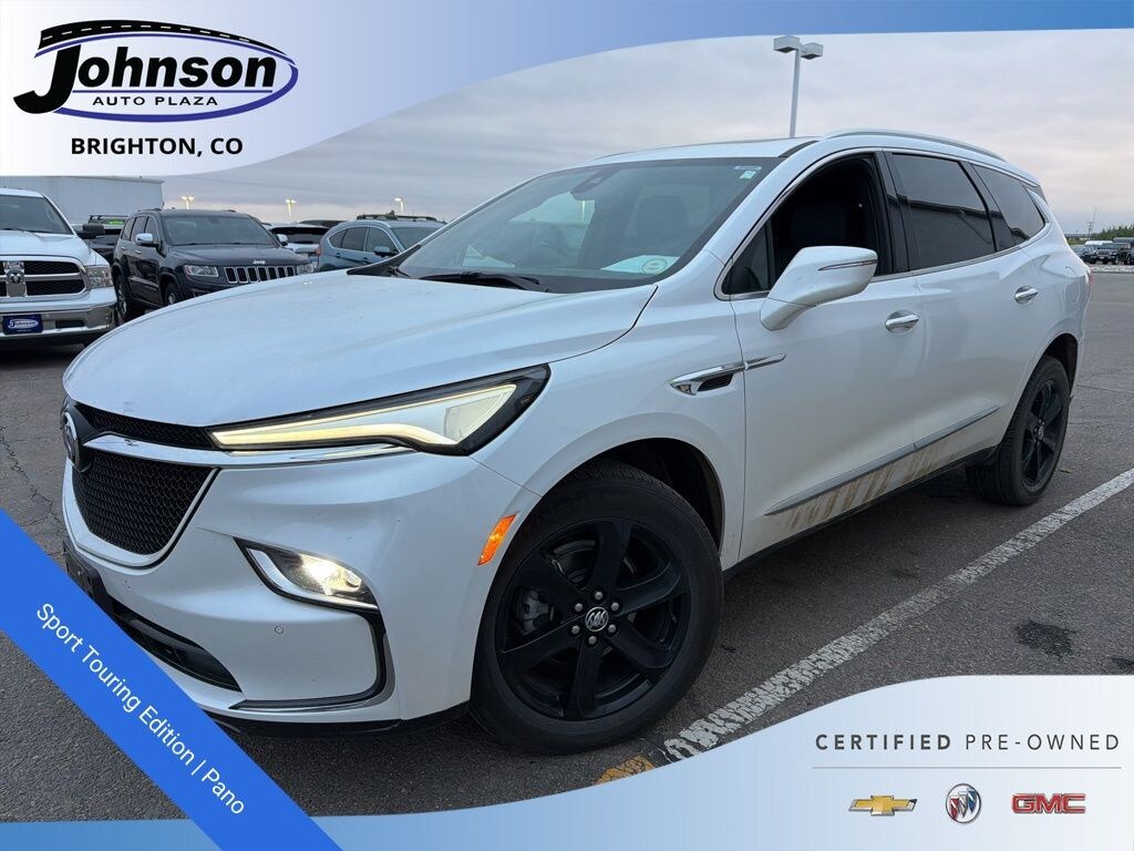 We look forward to serving you! Experience Buick Package (Front Power Sliding Moonroof), Front Mounting License Plate Bracket Package, Preferred Equipment Group 1SL (Front & Rear Park Assist and Heated Steering Wheel), Sport Touring Edition (Sport Touring Liftgate Badging, Unique Sport Grille w/Body-Color Surround, and Wheels: 20" Gloss Black), AWD, 18" Aluminum Wheels, 3.49 Axle Ratio, 3rd row seats: split-bench, 4-Wheel Disc Brakes, 6 Speakers, 6-Speaker Audio System Feature, 6-Way Power Front Passenger Seat Adjuster, 7-Passenger Seating, 8-Way Power Driver Seat Adjuster, ABS brakes, Air Conditioning, Alloy wheels, AM/FM radio: SiriusXM with 360L, Auto High-beam Headlights, Auto-dimming door mirrors, Auto-dimming Rear-View mirror, Automatic temperature control, Brake assist, Bumpers: body-color, Compass, Delay-off headlights, Driver door bin, Driver vanity mirror, Dual front impact airbags, Dual front side impact airbags, Electronic Stability Control, Emergency communication system: OnStar and Buick connected services capable, Four wheel independent suspension, Front anti-roll bar, Front Bucket Seats, Front Center Armrest, Front dual zone A/C, Front reading lights, Fully automatic headlights, Garage door transmitter, Heated door mirrors, Heated Driver & Front Passenger Seats, Heated front seats, Heated steering wheel, Illuminated entry, Leather steering wheel, Low tire pressure warning, Occupant sensing airbag, Outside temperature display, Overhead airbag, Overhead console, Panic alarm, Passenger door bin, Passenger vanity mirror, Perforated Leather-Appointed Seat Trim, Power door mirrors, Power Driver Lumbar Control Seat Adjuster, Power driver seat, Power Liftgate, Power Passenger Lumbar Control Seat Adjuster, Power passenger seat, Power steering, Power windows, Premium audio system: Buick Infotainment System, Radio data system, Radio: Buick Infotainment System AM/FM Stereo, Rear air conditioning, Rear anti-roll bar, Rear reading lights, Rear window defroster, Rear window wiper, Remote keyless entry, Roof rack: rails only, Security system, SiriusXM w/360L, Speed control, Speed-sensing steering, Spoiler, Steering wheel mounted audio controls, Tachometer, Telescoping steering wheel, Tilt steering wheel, Traction control, Trip computer, Turn signal indicator mirrors, Variably intermittent wipers, Voltmeter, and Wireless Apple CarPlay/Wireless Android AutO.