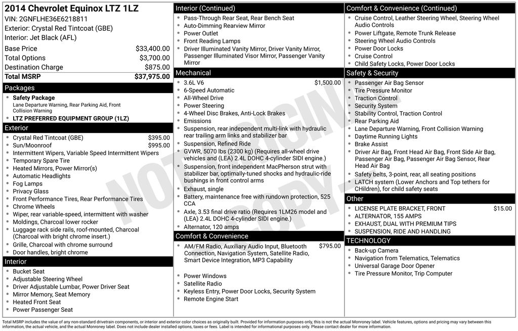 2014 Chevrolet Equinox LTZ Crystal Red Tintcoat AWD 3.6L V6 SIDI 6-Speed Automatic with Overdrive