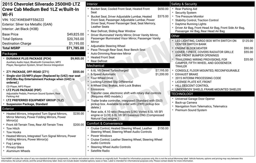 2015 Chevrolet Silverado 2500HD LTZ Silver Ice Metallic 4WD Duramax 6.6L V8 Turbodiesel Allison 1000 6-Speed Automatic