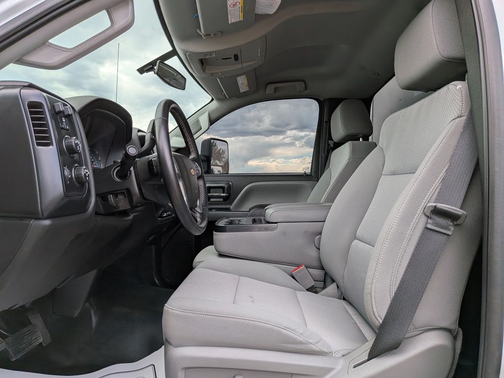 We look forward to serving you! Vocational Specific Heavy Suspension Package, 10-Way Power Driver's Seat Adjuster, 110-Volt AC Power Outlet, 30,000 lbs. GCWR (13,607 kg), 4.30 Rear Axle Ratio, 40/20/40 Front 3-Passenger Split Bench Seat, ABS brakes, Air Conditioning, Backup Alarm, Black Frame-Mounted Front Recovery Hooks, Chevrolet Connected Access Capable, Chrome Front Bumper, Chrome Grille, Cloth Seat Trim, Delay-off headlights, Driver door bin, Dual front impact airbags, Dual front side impact airbags, Dual rear wheels, Electronic Stability Control, Engine Block Heater, Exterior Parking Camera Rear, Front Center Armrest w/Storage, Front Halogen Fog Lamps, Front License Plate Kit, Front reading lights, Front Stabilizer Bar, Frontal Passenger-Side Airbag Deactivation Switch, Fully automatic headlights, Limited-Slip Axle, Manual Regeneration Diesel Particulate Filter DPF, Occupant sensing airbag, OnStar & Chevrolet Connected Services Capable, Overhead airbag, Overhead console, Passenger cancellable airbag, Passenger door bin, Power steering, Power Take-Off Engine Control Provisions, Power Windows w/Driver Express Up & Down, Premium audio system: Chevrolet MyLink, Provision For Cab Roof Mounted Lamp/Beacon, Rear Shock Absorbers, Remote Keyless Entry, Single-Slot CD/MP3 Player, Single-Zone Air Conditioning, SiriusXM Radio, Speed control, Steel Frame-Mounted Skid Plate, Stone Protection Grille Guard Screen, Tachometer, Tilt steering wheel, Tool Kit w/Rim Wrench & Handle Only, Top Post Threaded Battery Jump Start Stud, Traction control, Trip computer, Upfitter Electrical Provisions In Rear Of Cab, Variably intermittent wipers, Voltmeter, Wheels: 19.5" x 6.75" Black Painted Hub Piloted Steel w/8-Holes, and Wheels: 19.5" x 6.75" White Painted Hub Piloted Steel w/8-HoleS.