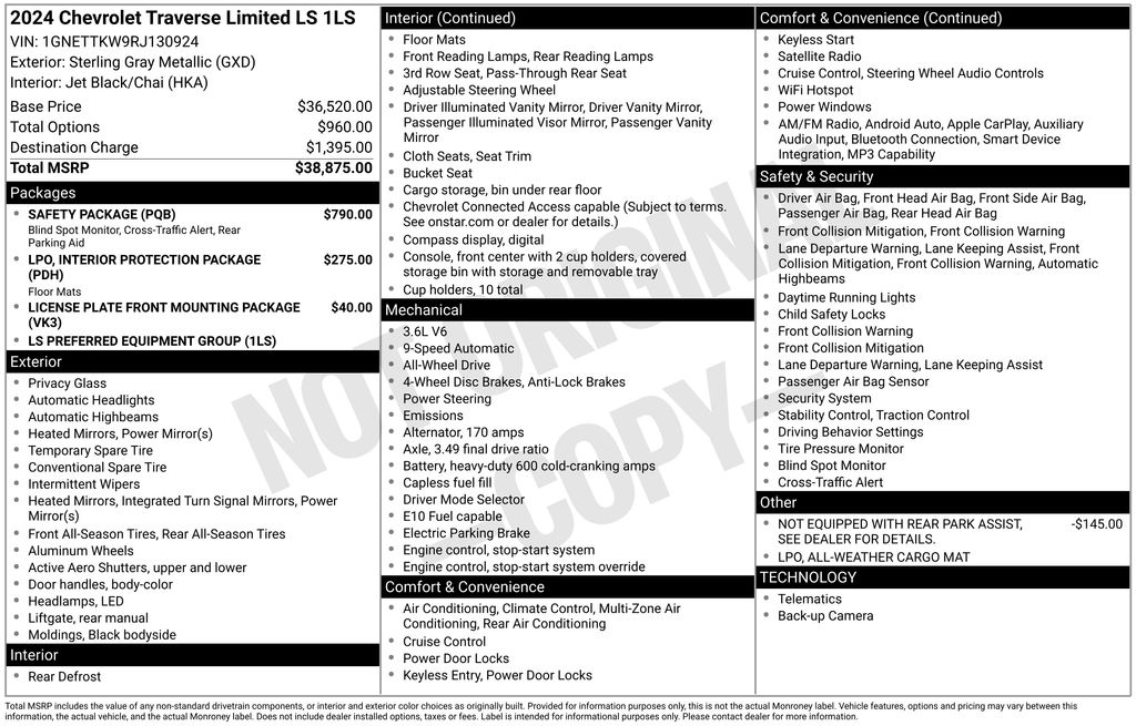 2024 Chevrolet Traverse Limited LS Sterling Gray Metallic AWD 3.6L V6 SIDI VVT 9-Speed Automatic