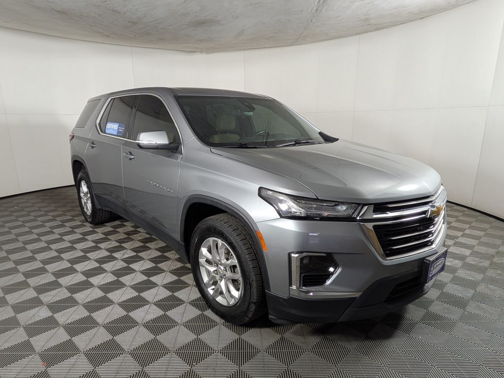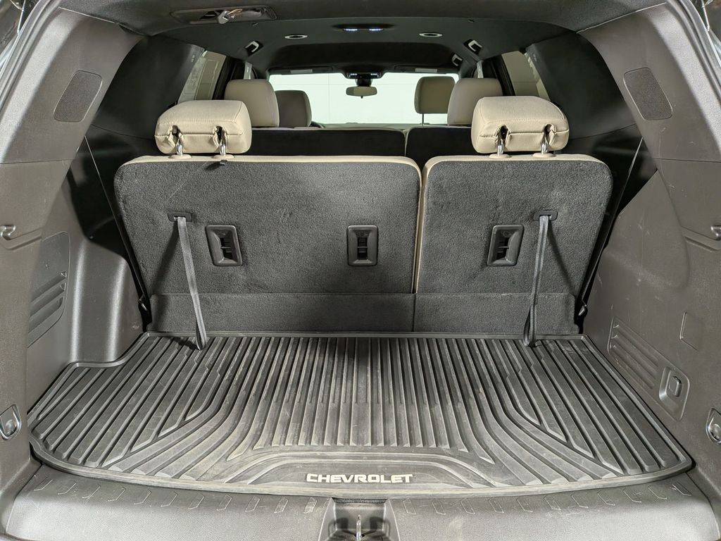 We look forward to serving you! Front License Plate Bracket Mounting Package, Interior Protection Package (LPO) (1st & 2nd Row All-Weather Floor Mats, 3rd Row All-Weather Floor Mats, and All-Weather Cargo Mat (LPO)), Preferred Equipment Group 1LS, Safety Package (Lane Change Alert w/Side Blind Zone Alert, Outside Heated Power-Adjustable Mirrors, Rear Cross Traffic Alert, and Rear Park Assist w/Audible Warning), Chevrolet Certified Pre-Owned Certified, 2-Way Manual Front Passenger Seat Adjuster, 3.49 Axle Ratio, 3rd row seats: split-bench, 4-Wheel Disc Brakes, 6 Speakers, 6-Speaker Audio System Feature, 6-Way Manual Driver Seat Adjuster, ABS brakes, Air Conditioning, Alloy wheels, AM/FM radio: SiriusXM, Apple CarPlay/Android Auto, Auto High-beam Headlights, Automatic temperature control, Brake assist, Bumpers: body-color, Compass, Delay-off headlights, Driver door bin, Driver vanity mirror, Dual front impact airbags, Dual front side impact airbags, Electronic Stability Control, Emergency communication system, Exterior Parking Camera Rear, Four wheel independent suspension, Front anti-roll bar, Front Bucket Seats, Front Center Armrest, Front dual zone A/C, Front reading lights, Fully automatic headlights, Heated door mirrors, Illuminated entry, Low tire pressure warning, Not Equipped w/Rear Park Assist, Occupant sensing airbag, Outside temperature display, Overhead airbag, Overhead console, Panic alarm, Passenger door bin, Passenger vanity mirror, Power door mirrors, Power steering, Power windows, Premium Cloth Seat Trim, Radio data system, Radio: Chevrolet Infotainment System AM/FM Stereo, Rear air conditioning, Rear anti-roll bar, Rear reading lights, Rear window defroster, Rear window wiper, Remote keyless entry, Security system, SiriusXM Radio, Speed control, Speed-sensing steering, Split folding rear seat, Spoiler, Steering wheel mounted audio controls, Tachometer, Telescoping steering wheel, Tilt steering wheel, Traction control, Trip computer, Variably intermittent wipers, Voltmeter, and Wheels: 18" Bright Silver Painted AluminuM.