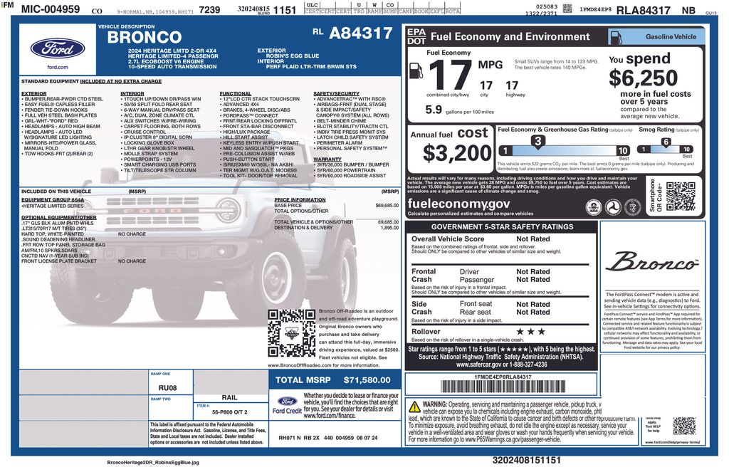 2024 Ford Bronco Heritage Limited Edition Blue 4WD 2.7L EcoBoost V6 10-Speed Automatic