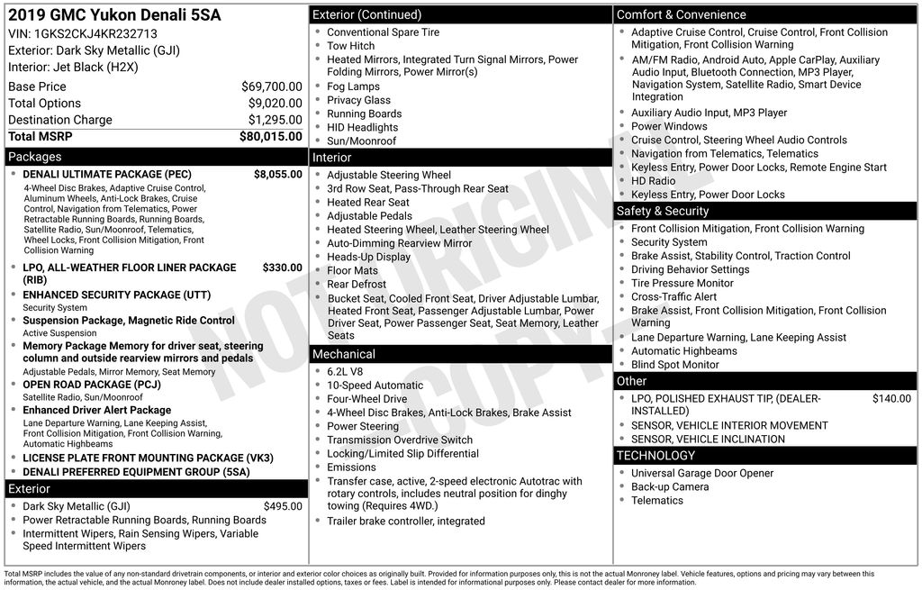 2019 GMC Yukon Denali Dark Sky Metallic 4WD EcoTec3 6.2L V8 10-Speed Automatic with Overdrive