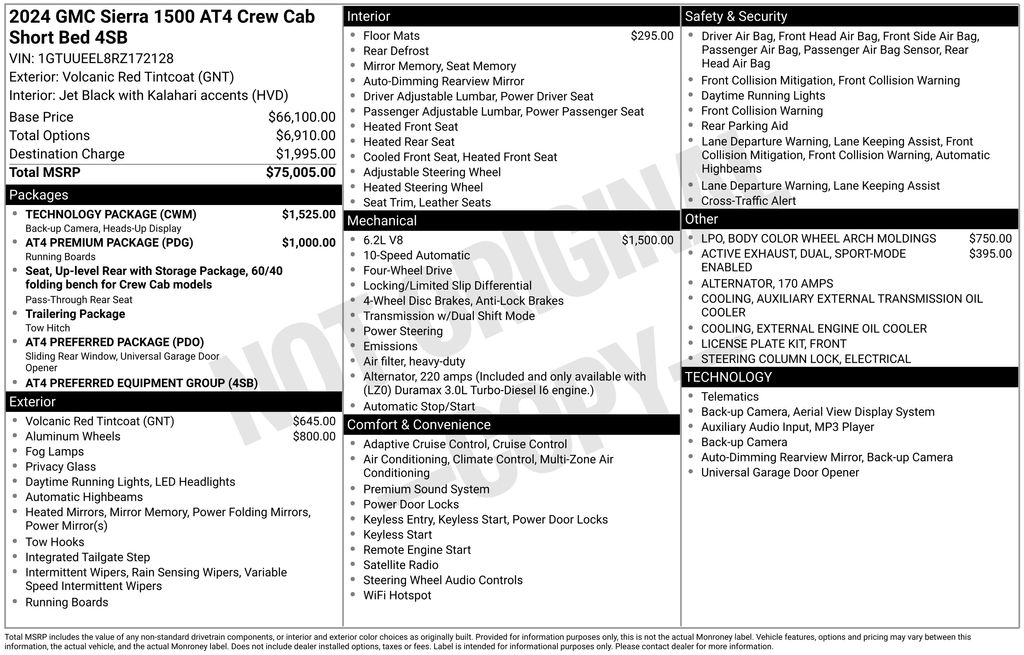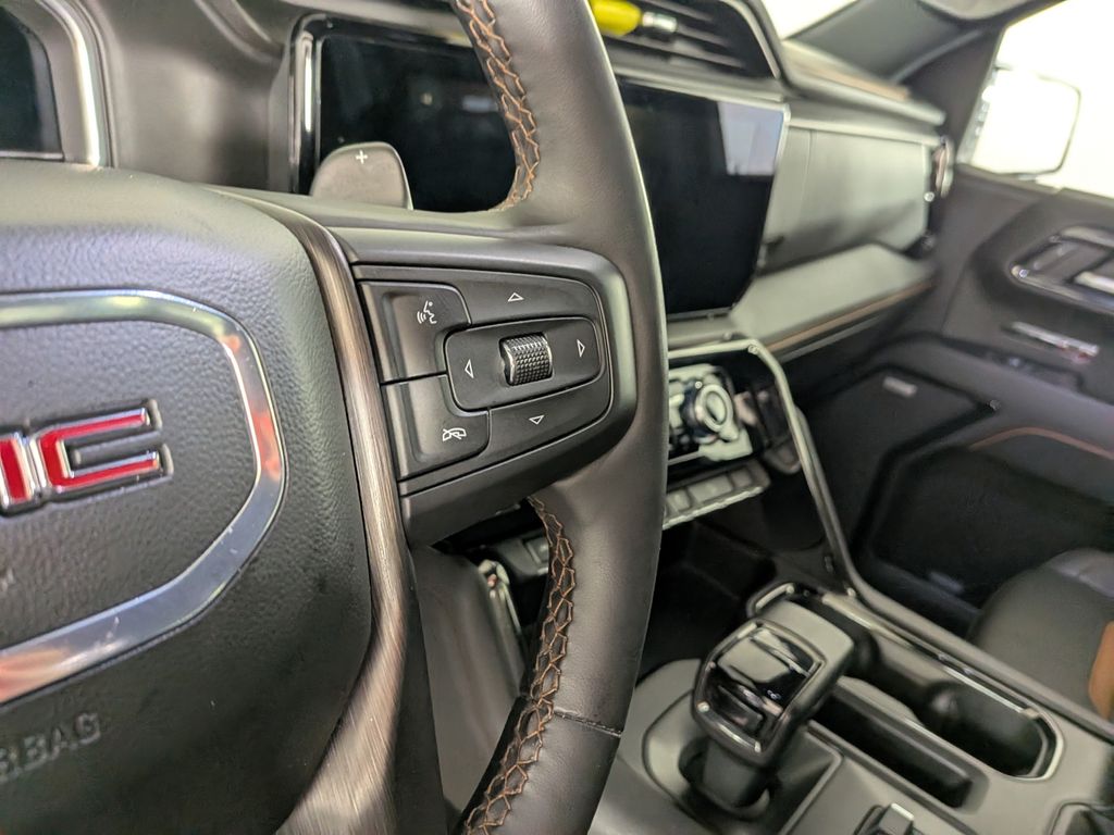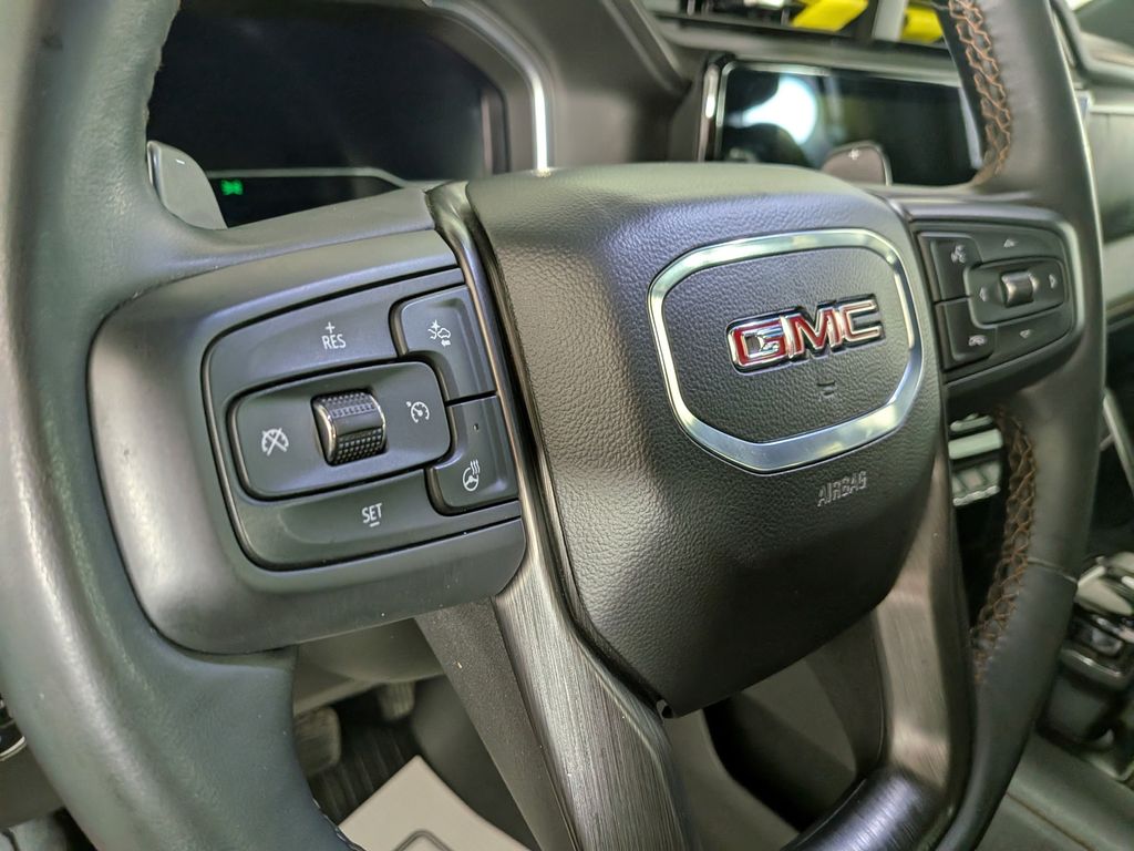 We look forward to serving you! AT4 Preferred Package (Power Sliding Rear Window w/Rear Defogger and Universal Home Remote), AT4 Premium Package (Off-Road High Clearance Step (LPO)), Preferred Equipment Group 4SB (120-Volt Bed Mounted Power Outlet, 120-Volt Interior Power Outlet, 2 Charge/Data USB Ports Inside Center Console, 2 Type-C Charge-Only Rear USB Ports, 2 USB Ports, 220 Amp Alternator, Auto-Locking Rear Differential, Black Chrome Header & Grille Insert Bars, Color-Keyed Carpeting Floor Covering, Deep-Tinted Glass, Electric Rear-Window Defogger, Floor-Mounted Center Console, Front Prem Floor Liners w/Removable Carpet Insert, Front Rain-Sensing Wipers, GMC Connected Access Capable, HD Surround Vision, Heated 2nd Row Outboard Seats, Heated Driver & Front Outboard Passenger Seating, Heavy-Duty Air Filter, Hill Descent Control, Hitch View, In-Vehicle Trailering System App, Integrated Trailer Brake Controller, Keyless Open & Start, LED Cargo Area Lighting, OnStar & GMC Connected Services Capable, Perimeter Lighting, Power Door Locks, Power Front Passenger Windows w/Express Up/Down, Power Front Windows w/Driver Express Up/Down, Power Rake & Telescoping Steering Column, Power Rear Windows w/Express Down, Premium Bose 7-Speaker Sound System, Push Button Start, Rear Cross Traffic Braking, Rear Pedestrian Detection, Rear Prem Floor Liners w/Removable Carpet Insert, Rear Wheelhouse Liners, Red Recovery Hooks, Remote Vehicle Starter System, SiriusXM w/360L, Spray-On Pickup Bedliner w/AT4 Logo, Steering Wheel Audio Controls, Theft Deterrent System (Unauthorized Entry), Trailer Camera Provisions, Trailer Side Blind Zone Alert, Ultrasonic Front & Rear Park Assist, Ventilated Driver & Front Passenger Seats, Wi-Fi Hotspot Capable, and Wireless Charging), Technology Package (Bed View Camera, Multicolor 15" Diagonal Head-Up Display, and Rear Camera Mirror), Trailering Package (Hitch Guidance), 10-Speed Automatic, 4WD, Jet Black With Kalahari Accents Leather, 10-Way Power Driver Seat Adjuster w/Lumbar, 10-Way Power Passenger Seat Adjuster w/Lumbar, 170 Amp Alternator, 18" x 8.5" Machined Aluminum Wheels, 3.23 Rear Axle Ratio, 4-Wheel Disc Brakes, 7 Speakers, ABS brakes, Air Conditioning, All-Weather Floor Liners w/AT4 Logo (LPO), Alloy wheels, AM/FM radio: SiriusXM with 360L, Apple CarPlay/Android Auto, Auto High-beam Headlights, Auto-dimming door mirrors, Auto-dimming Rear-View mirror, Automatic Emergency Braking, Automatic temperature control, Auxiliary External Transmission Oil Cooler, Block heater, Body Color Wheel Arch Moldings (LPO), Brake assist, Buckle to Drive, Bumpers: body-color, Compass, Delay-off headlights, Driver door bin, Driver Memory, Driver vanity mirror, Dual Active Exhaust, Dual front impact airbags, Dual front side impact airbags, Electronic Stability Control, External Engine Oil Cooling, Following Distance Indicator, Forward Collision Alert, Front anti-roll bar, Front Bucket Seats, Front Center Armrest, Front dual zone A/C, Front fog lights, Front License Plate Kit, Front Pedestrian Braking, Front reading lights, Front wheel independent suspension, Fully automatic headlights, Heated door mirrors, Heated front seats, Heated rear seats, Heated steering wheel, Illuminated entry, IntelliBeam Automatic High Beam On/Off, Lane Keep Assist w/Lane Departure Warning, Low tire pressure warning, Memory seat, Navigation System, Occupant sensing airbag, Off-Road Suspension, Outside temperature display, Overhead airbag, Overhead console, Panic alarm, Passenger door bin, Passenger vanity mirror, Perforated Front Leather Seat Trim, Power door mirrors, Power driver seat, Powe