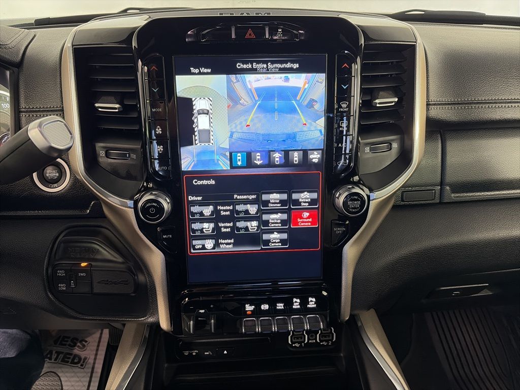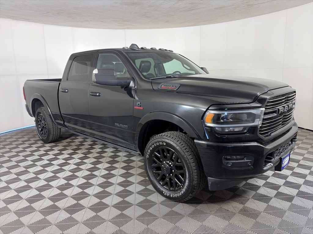 We look forward to serving you! Black Appearance Package (Black Exterior Mirrors, Black Exterior Truck Badging, Black Headlamp Bezels, Black Interior Accents, Black Ram Head Tailgate Badge, Black Tail Lamp Bezels, Black Wheel Center Hub, Body Color Door Handles, Body Color Grille Surround, Exterior Mirrors w/Memory, Gloss Black Grille Billets/Accents, Mirror-Mounted Aux Reverse Lamps, Painted Front Bumper, Painted Rear Bumper, Power Adjustable Convex Aux Mirrors, Power Black Tow Mirrors w/Convex Spotter & Memory, and Wheels: 20" x 8.0" Black Painted Aluminum), Cold Weather Group (Engine Block Heater and Winter Front Grille Cover), Laramie Level 2 Equipment Group (1-Year SiriusXM Guardian Trial, 17 Speaker High Performance Audio, 2nd Row In Floor Storage Bins, 5-Year SiriusXM Traffic Service, 5-Year SiriusXM Travel Link Service, Auto High Beam Headlamp Control, Blind Spot & Cross Path Detection, Disassociated Touchscreen Display, Foam Bottle Insert (Door Trim Panel), For Details Visit DriveUconnect.com, GPS Navigation, HD Radio, Heated Second Row Seats, Media Hub w/2 Charge Only USBs, Power Adjustable Pedals w/Memory, Power Chrome Tow Mirrors w/Convex Spotter & Memory, Radio: Uconnect 4C Nav w/8.4" Display, Radio/Driver Seat/Mirrors/Pedals Memory, Rain Sensitive Windshield Wipers, Ramcharger Wireless Charging Pad, Remote Tailgate Release, Single Disc Remote CD Player, SiriusXM Traffic Plus, SiriusXM Travel Link, and Ventilated Front Seats), Protection Group, Quick Order Package 21H Laramie, Safety Group (Adaptive Cruise Control w/Stop and Full Speed Forward Collision Warning Plus), Towing Technology Group (CTR Stop Lamp w/Cargo View Camera, Surround View Camera System, and Trailer Reverse Guidance), #1 Seat Foam Cushion, 10 Speakers, 115V Auxiliary Rear Power Outlet, 12" Touchscreen Display, 2 Way Rear Headrest Seat, 220 Amp Alternator, 3.73 Axle Ratio, 4 Way Front Headrests, 4-Wheel Disc Brakes, 5th Wheel/Gooseneck Towing Prep Group, ABS brakes, Active Noise Control System, Adjustable pedals, Air Conditioning, Alloy wheels, AM/FM radio: SiriusXM, Apple CarPlay, Apple CarPlay/Android Auto, Auto Level Rear Air Suspension, Auto-dimming Rear-View mirror, Automatic temperature control, Brake assist, Bumpers: chrome, Center Hub, Clearance Lamps, Compass, Delay-off headlights, Driver door bin, Driver vanity mirror, Dual front impact airbags, Dual front side impact airbags, Electronic Stability Control, Electronically Controlled Throttle, Folding Flat Load Floor Storage, Front & Rear Rubber Floor Mats, Front anti-roll bar, Front Bumper Sight Shields, Front Center Armrest w/Storage, Front dual zone A/C, Front fog lights, Front reading lights, Front Seat Back Map Pockets, Fully automatic headlights, Garage door transmitter, Google Android Auto, GPS Antenna Input, Heated door mirrors, Heated Front Seats, Heated front seats, Heated Steering Wheel, Heated steering wheel, High Back Seats, Illuminated entry, Integrated Voice Command w/Bluetooth, Leather steering wheel, Leather Trim 40/20/40 Bench Seat, Low tire pressure warning, Occupant sensing airbag, Outside temperature display, Overhead airbag, Overhead console, Panic alarm, ParkView Rear Back-Up Camera, Passenger door bin, Passenger vanity mirror, Power 8-Way Adjustable Passenger Seat, Power Adjust 8-Way Driver Seat, Power Deployable Running Boards, Power door mirrors, Power driver seat, Power passenger seat, Power steering, Power Sunroof, Power windows, Radio data system, Radio: Uconnect 12.0 w/Navigation, Radio: Uconnect 4 w/8.4" Display, Rear 60/40 Folding Seat, Rear reading lights, Rear seat center armrest, Rear step bumper, Rear window defroste