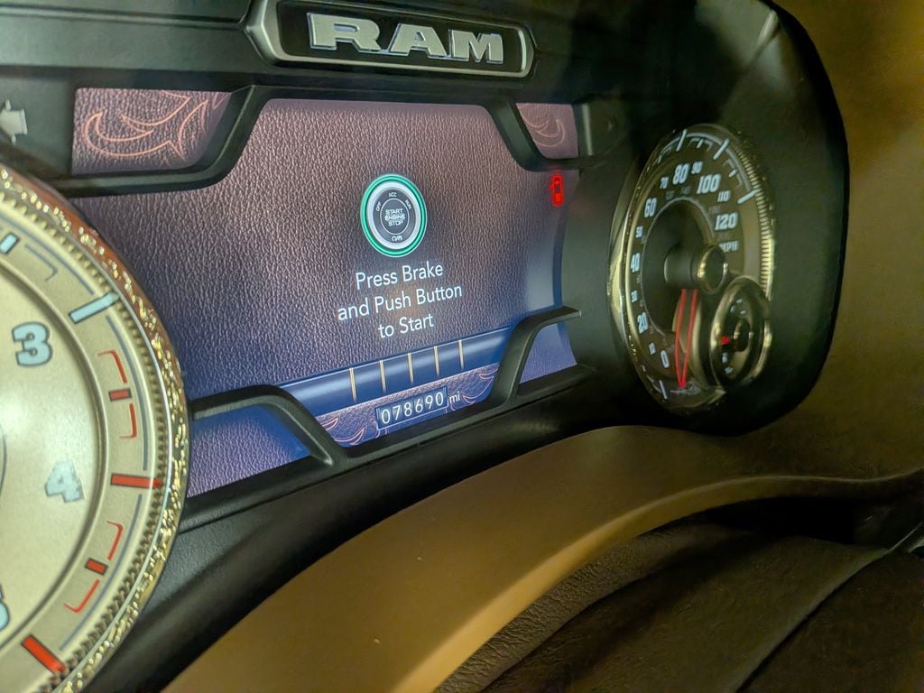 We look forward to serving you! Body Color Bumper Group (Painted Front Bumper and Painted Rear Bumper), Heavy Duty Snow Plow Prep Group, Longhorn Level 1 Equipment Group (12" Touchscreen Display, 17 Speaker harman kardon Premium Sound, 4G LTE Wi-Fi Hot Spot, Alexa Built-In, All R1 High Radios, All Radio Equipped Vehicles, Apple CarPlay, Connected Travel & Traffic Services, Connectivity - US/Canada, Disassociated Touchscreen Display, For Details, Visit DriveUconnect.com, For More Info, Call 800-643-2112, Global Telematics Box Module (TBM), Google Android Auto, GPS Antenna Input, GPS Navigation, HD Radio, Integrated Voice Command w/Bluetooth, Off-Road Information Pages, Power Deployable Running Boards, Radio: Uconnect 5 Nav w/12.0" Display, Ramcharger Wireless Charging Pad, Selectable Tire Fill Alert, SiriusXM Radio Service, and SiriusXM w/360L), Protection Group, Quick Order Package 2HK Longhorn, Safety Group (DISC) (Adaptive Cruise Control w/Stop, Adaptive Steering System, Digital Rearview Mirror, Full Speed Forward Collision Warning Plus, and Lane Keep Assist), Towing Technology Group (Center Stop Lamp w/Cargo View Camera, Surround View Camera System, and Trailer Reverse Guidance), 10 Speakers, 115V Auxiliary Rear Power Outlet, 2 Way Rear Headrest Seat, 220 Amp Alternator, 3.73 Axle Ratio, 4 Way Front Headrests, 4-Wheel Disc Brakes, 5th Wheel/Gooseneck Towing Prep Group, 8.4" Touchscreen Display, ABS brakes, Active Noise Control System, Adjustable pedals, Air Conditioning, Air Suspension Decal, Alloy wheels, AM/FM radio: SiriusXM with 360L, Anti-Spin Differential Rear Axle, Apple CarPlay/Android Auto, Audio memory, Auto High-beam Headlights, Auto Level Rear Air Suspension, Auto-dimming Rear-View mirror, Automatic temperature control, Blind Spot & Cross Path Detection (DISC), Brake assist, Bucket Seats, Bumpers: chrome, Center Hub, Chrome Tow Hooks, Compass, Dash Pass Thru Wire Circuits, Delay-off headlights, Driver door bin, Driver vanity mirror, Dual front impact airbags, Dual front side impact airbags, Electronic Stability Control, Electronically Controlled Throttle, Front anti-roll bar, Front Bucket Seats, Front Center Armrest w/Storage, Front dual zone A/C, Front fog lights, Front License Plate Bracket, Front reading lights, Front Seat Back Map Pockets, Full Length Premium Upgraded Floor Console, Fully automatic headlights, Garage door transmitter, Genuine wood console insert, Genuine wood dashboard insert, Genuine wood door panel insert, Heated door mirrors, Heated Front Seats, Heated front seats, Heated rear seats, Heated Second Row Seats, Heated Steering Wheel, Heated steering wheel, High Back Seats, I/P Mounted Auxiliary Switches, Illuminated entry, Integrated Center Stack Radio, Leather steering wheel, Low tire pressure warning, Manufacturer's Statement of Origin, Memory seat, MOPAR Deployable Bed Step, Navigation System, Occupant sensing airbag, Outside temperature display, Overhead airbag, Overhead console, Panic alarm, ParkView Rear Back-Up Camera, Passenger door bin, Passenger vanity mirror, Pedal memory, Power 2-Way Driver Lumbar Adjust, Power 2-Way Passenger Lumbar Adjust, Power Adjust 8-Way Driver Seat, Power Adjust 8-Way Front Passenger Seat, Power door mirrors, Power driver seat, Power passenger seat, Power steering, Power Sunroof, Power windows, Premium Filigree Leather Seats, Radio data system, Radio: Uconnect 5 Nav w/8.4" Display, Radio/Driver Seat/Mirrors/Pedals Memory, Rain sensing wipers, Rear 60/40 Folding Seat, Rear anti-roll bar, Rear reading lights, Rear seat center armrest, Rear step bumper, Rear window defroster, Remote keyless entry, Security system, Speed control, Split folding rear seat, Stee
