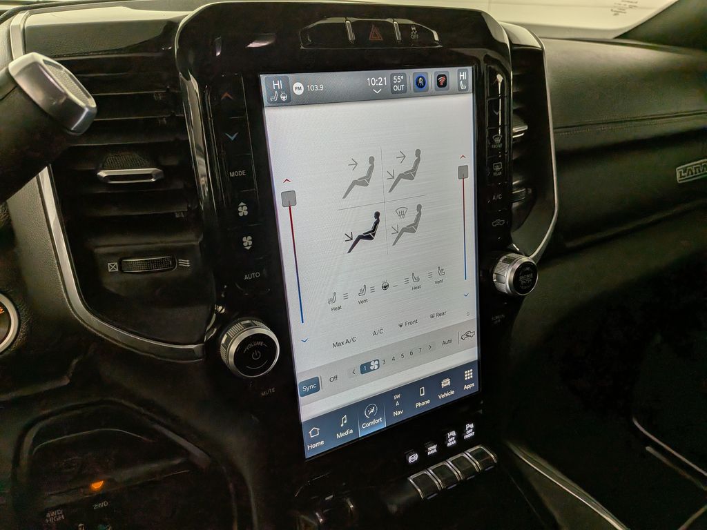 We look forward to serving you! Cold Weather Group (Engine Block Heater and MOPAR Winter Front Grille Cover), Heavy Duty Snow Plow Prep Group (220 Amp Alternator), Laramie Level B Equipment Group (DISC) (17 Speaker harman kardon Premium Sound, 2nd Row In Floor Storage Bins, 4G LTE Wi-Fi Hot Spot, 8.4" Touchscreen Display, Alexa Built-In, All R1 High Radios, All Radio Equipped Vehicles, Apple CarPlay, Auto High Beam Headlamp Control, Chrome Exterior Mirrors, Connected Travel & Traffic Services, Connectivity - US/Canada, Disassociated Touchscreen Display, Exterior Mirrors Courtesy Lamps, Exterior Mirrors w/Heating Element, Exterior Mirrors w/Memory, Exterior Mirrors w/Supplemental Signals, Foam Bottle Insert (Door Trim Panel), For Details, Visit DriveUconnect.com, For More Info, Call 800-643-2112, Global Telematics Box Module (TBM), Google Android Auto, GPS Antenna Input, GPS Navigation, HD Radio, Heated Second Row Seats, Integrated Center Stack Radio, Integrated Voice Command w/Bluetooth, Mirror Running Lights, Mirror-Mounted Aux Reverse Lamps, Off-Road Information Pages, Power Adjustable Convex Aux Mirrors, Power Adjustable Pedals w/Memory, Power Chrome Tow Mirrors w/Convex Spotter & Memory, Power Folding Mirrors, Radio: Uconnect 5 Nav w/8.4" Display, Radio/Driver Seat/Mirrors/Pedals Memory, Rain Sensitive Windshield Wipers, Remote Tailgate Release, Selectable Tire Fill Alert, SiriusXM Radio Service, SiriusXM w/360L, and Trailer Tow Mirrors), Night Edition (Black Exterior Mirrors, Black Exterior Truck Badging, Black Headlamp Bezels, Black Interior Accents, Black Ram Head Tailgate Badge, Black Tail Lamp Bezels, Black Wheel Center Hub, Body Color Door Handles, Body Color Grille Surround, Gloss Black Grille Billets/Accents, Painted Front Bumper, Painted Rear Bumper, Power Black Tow Mirrors w/Convex Spotter & Memory, and Wheels: 20" x 8.0" Black Painted Aluminum), Off Road Package (Front Performance Tuned Shock Absorbers, Hill Descent Control, Off Road Decal, Rear Performance Tuned Shock Absorbers, and Tow Hooks), Quick Order Package 2HH Laramie, 10 Speakers, 115V Auxiliary Rear Power Outlet, 12" Touchscreen Display, 2 Way Rear Headrest Seat, 3.73 Axle Ratio, 4 Way Front Headrests, 4-Wheel Disc Brakes, ABS brakes, Active Noise Control System, Adjustable pedals, Air Conditioning, Alloy wheels, AM/FM radio: SiriusXM, Anti-Spin Differential Rear Axle, Apple CarPlay/Android Auto, Auto-dimming Rear-View mirror, Automatic temperature control, Bluetooth Handsfree Phone & Audio, Brake assist, Bumpers: chrome, Compass, CTR Stop Lamp w/Cargo View Camera, Delay-off headlights, Driver door bin, Driver vanity mirror, Dual front impact airbags, Dual front side impact airbags, Electronic Stability Control, Electronically Controlled Throttle, Front anti-roll bar, Front Center Armrest w/Storage, Front dual zone A/C, Front fog lights, Front License Plate Bracket, Front reading lights, Front Seat Back Map Pockets, Fully automatic headlights, Garage door transmitter, Heated door mirrors, Heated Front Seats, Heated front seats, Heated Steering Wheel, Heated steering wheel, Illuminated entry, Leather steering wheel, Leather Trim 40/20/40 Bench Seat, LED Bed Lighting, Low tire pressure warning, Manufacturer's Statement of Origin, Occupant sensing airbag, Outside temperature display, Overhead airbag, Overhead console, Panic alarm, ParkView Rear Back-Up Camera, Passenger door bin, Passenger vanity mirror, Power 2-Way Driver Lumbar Adjust, Power 2-Way Passenger Lumbar Adjust, Power Adjust 8-Way Driver Seat, Power Adjust 8-Way Front Passenger Seat, Power Deployable Running Boards, Power door mirrors, Power driver seat, Power passenger seat, Power steering, Power win