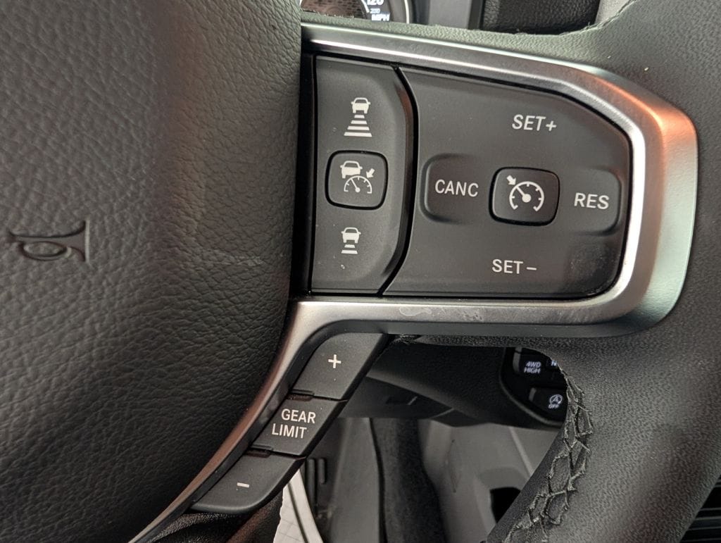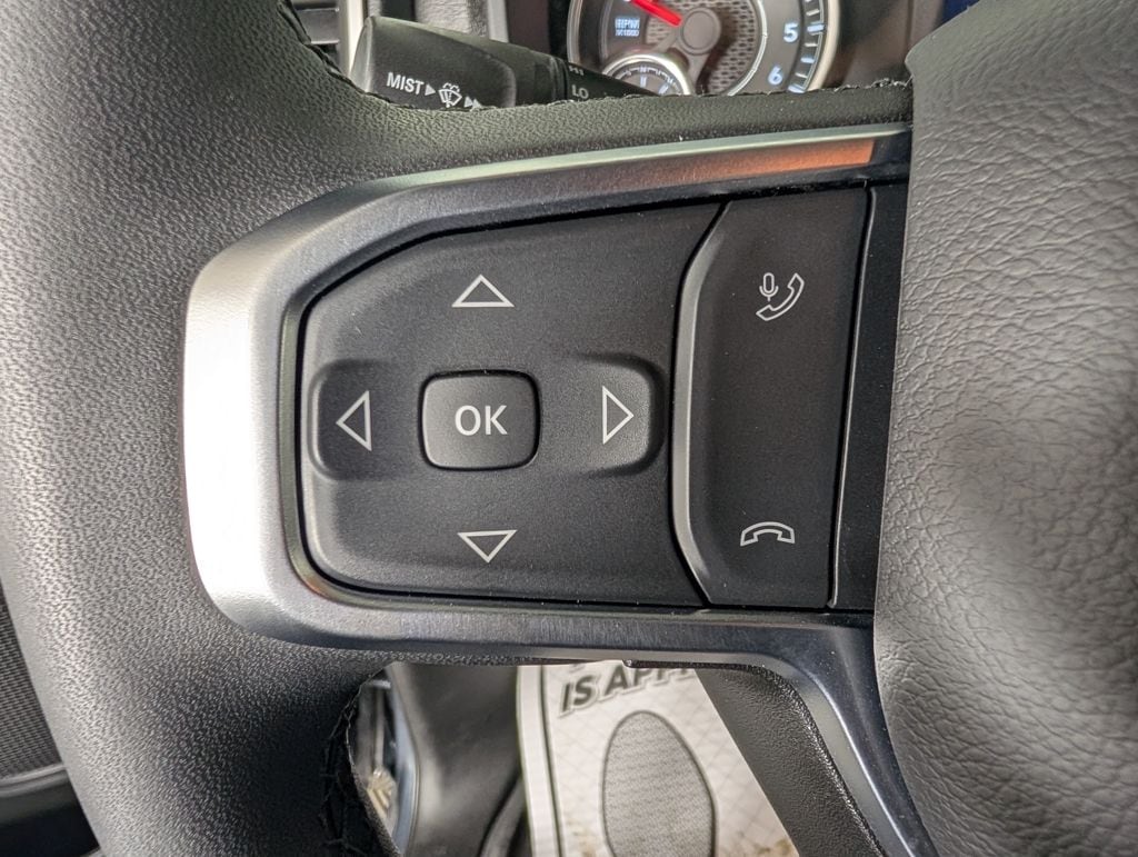 We look forward to serving you! Big Horn Level 1 Equipment Group (115V Auxiliary Power Outlet, 2nd Row In Floor Storage Bins, 400W Inverter, Auto Power-Folding Mirrors, Auto-Dimming Exterior Driver Mirror, Auto-Dimming Rear-View Mirror, Black Exterior Mirrors, Black Premium Power Mirrors, Convex Wide-Angle Exterior Mirror Insert, Exterior Mirrors Courtesy Lamps, Exterior Mirrors w/Heating Element, Exterior Mirrors w/Supplemental Signals, Glove Box Lamp, Heated Front Seats, Heated Steering Wheel, Leather Wrapped Steering Wheel, Power 2-Way Driver Lumbar Adjust, Power Adjust 8-Way Driver Seat, Power Adjustable Pedals, Rear Power Sliding Window, Rear Window Defroster, Steering Wheel Mounted Audio Controls, Sun Visors w/Illuminated Vanity Mirrors, and Universal Garage Door Opener), Quick Order Package 21Z Big Horn, 3 Rear Seat Head Restraints, 4 Way Front Headrests, 4-Wheel Disc Brakes, 4G LTE Wi-Fi Hot Spot, 6 Speakers, ABS brakes, Air Conditioning, Alloy wheels, AM/FM radio, Anti-Spin Differential Rear Axle, Apple CarPlay/Android Auto, Auto High-beam Headlights, Brake assist, Bumpers: chrome, Cloth Bench Seat, Compass, Connectivity - US/Canada, Delay-off headlights, Driver door bin, Dual front impact airbags, Dual front side impact airbags, Electronic Stability Control, Front anti-roll bar, Front Center Armrest w/Storage, Front fog lights, Front License Plate Bracket, Front reading lights, Front Seat Back Map Pockets, Front wheel independent suspension, Fully automatic headlights, GPS Antenna Input, Heated door mirrors, Illuminated entry, Integrated Voice Command w/Bluetooth, Low tire pressure warning, Manual Adjust 4-Way Front Passenger Seat, Manual Folding Exterior Mirrors, MOPAR Front & Rear Rubber Floor Mats, Occupant sensing airbag, Outside temperature display, Overhead airbag, Overhead console, Panic alarm, ParkView Rear Back-Up Camera, Passenger door bin, Passenger vanity mirror, Power door mirrors, Power steering, Power windows, Radio data system, Radio: Uconnect 5 W w/8.4" Display, RAM Grille Badge - Chrome, Rear 60/40 Folding Seat, Rear anti-roll bar, Rear seat center armrest, Rear step bumper, Remote keyless entry, Speed control, Split folding rear seat, Supplier Part Tracking (J-1), Tachometer, Telescoping steering wheel, Tilt steering wheel, Traction control, Trip computer, USB Host Flip, Variably intermittent wipers, Voltmeter, Wheels: 18" x 8" Cast-Aluminum Painted, and Wheels: 20" x 9" Aluminum Chrome Clad (WRK)