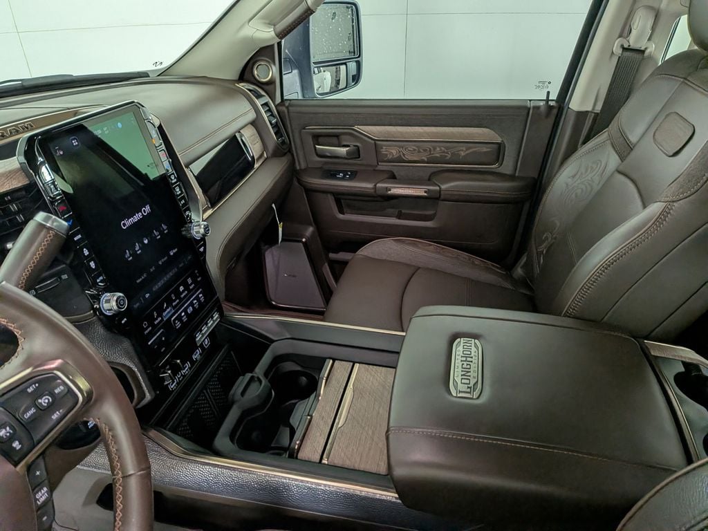 We look forward to serving you! Chrome Bumper Package (Bright Front Bumper and Bright Rear Bumper), Cold Weather Group (Engine Block Heater and MOPAR Winter Front Grille Cover), Longhorn Level 1 Equipment Group (Active Lane Management System, Adaptive Steering System, CTR Stop Lamp w/Cargo View Camera, Digital Rearview Mirror, Drowsy Driver Detection, LED Bed Lighting, MOPAR Spray In Bedliner, Power Deployable Running Boards, Surround View Camera System, Traffic Sign Recognition, Trailer Reverse Guidance, and Trailer Tire Pressure Monitoring System), Max Tow Package (5th Wheel/Gooseneck Towing Prep Group and Auto Level Rear Air Suspension), Quick Order Package 24K Longhorn (Longhorn Instrument Cluster Theme 3), Tow-Mode Digital Rear View Mirror Package (Tow-Mode Camera (Wired)), 115V Auxiliary Rear Power Outlet, 17 Speakers, 2 Way Rear Headrest Seat, 4 Way Front Headrests, 4-Wheel Disc Brakes, 50 Gallon Fuel Tank, 6000# Front Axle w/Hub Ext, ABS brakes, Adjustable pedals, Air Conditioning, Alloy wheels, AM/FM radio: SiriusXM with 360L, Apple CarPlay/Android Auto, Audio memory, Auto High-beam Headlights, Auto-dimming door mirrors, Auto-dimming Rear-View mirror, Automatic temperature control, Black Wheel Center Hub, Bodyside moldings, Box & Rear Fender Clearance Lamps, Brake assist, Bucket Seats, Bumpers: body-color, Center Hub, Clearance Lamps, Compass, Dash Pass Thru Wire Circuits, Delay-off headlights, Driver door bin, Driver vanity mirror, Dual Alternators Rated at 480 Amps, Dual front impact airbags, Dual front side impact airbags, Dual Rear Wheels, Dual Wireless Charging Pad, Electronic Stability Control, Folding Flat Load Floor Storage, Front anti-roll bar, Front Bucket Seats, Front Center Armrest w/Storage, Front dual zone A/C, Front fog lights, Front License Plate Bracket, Front reading lights, Front Seat Back Map Pockets, Full Length Premium Upgraded Floor Console, Fully automatic headlights, Garage door transmitter, Genuine wood console insert, Genuine wood dashboard insert, Genuine wood door panel insert, harman/kardon® Speakers, Heated door mirrors, Heated Front Seats, Heated front seats, Heated rear seats, Heated Second Row Seats, Heated Steering Wheel, Heated steering wheel, High Back Seats, I/P Mounted Auxiliary Switches, Illuminated entry, Leather steering wheel, Low tire pressure warning, Manufacturer's Statement of Origin, Memory seat, Navigation System, Occupant sensing airbag, Outside temperature display, Overhead airbag, Overhead console, Panic alarm, ParkView Rear Back-Up Camera, Passenger door bin, Passenger vanity mirror, Pedal memory, Power 2-Way Driver Lumbar Adjust, Power 2-Way Passenger Lumbar Adjust, Power Adjust 8-Way Driver Seat, Power Adjust 8-Way Front Passenger Seat, Power door mirrors, Power driver seat, Power passenger seat, Power steering, Power windows, Radio data system, Radio: Uconnect 5 Nav w/14.4" Display, Radio/Driver Seat/Mirrors/Pedals Memory, Rain sensing wipers, Rear 60/40 Folding Seat, Rear reading lights, Rear seat center armrest, Rear step bumper, Rear window defroster, Remote keyless entry, Security system, Speed control, Split folding rear seat, Steering wheel mounted audio controls, Tachometer, Tilt steering wheel, Traction control, Trip computer, Turn signal indicator mirrors, Ultra Premium Leather Seats, Variably intermittent wipers, Ventilated Front Seats, Ventilated front seats, Voltmeter, Wheels: 17" x 6.0" Polished Aluminum, and Wheels: 20" x 8.0" Diam Cut Alum w/Blk Pt PocK.