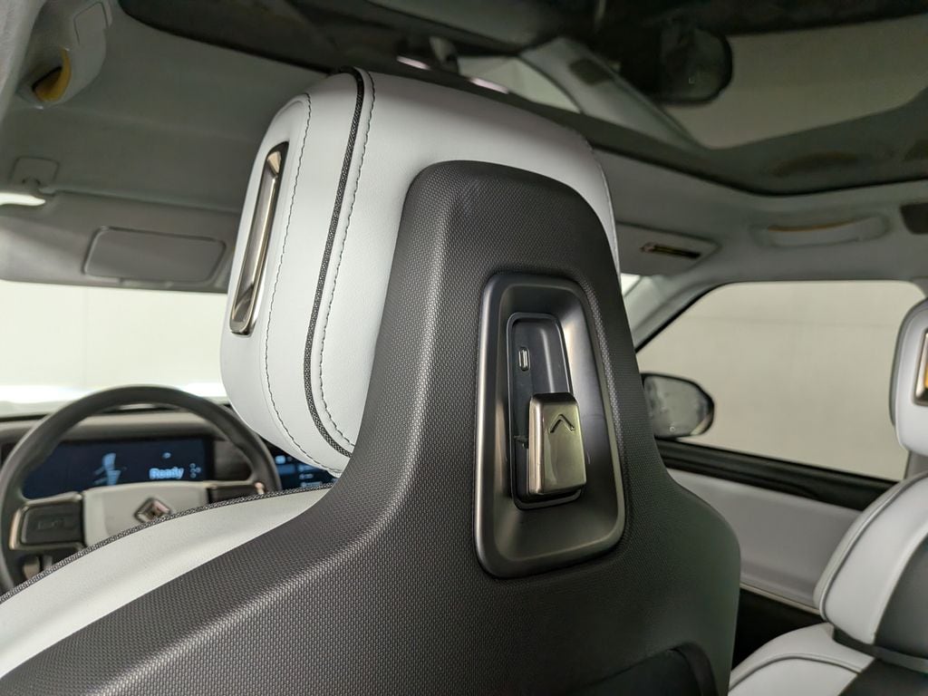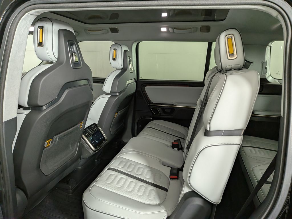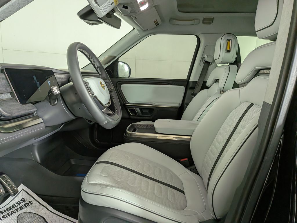 We look forward to serving you! 19 Speakers, 3rd row seats: bench, 4-Wheel Disc Brakes, 7 Seat Interior, ABS brakes, Adaptive suspension, Air Conditioning, Alloy wheels, Audio memory, Auto High-beam Headlights, Auto tilt-away steering wheel, Auto-dimming door mirrors, Auto-dimming Rear-View mirror, Auto-leveling suspension, Automatic temperature control, Brake assist, Delay-off headlights, Driver door bin, Driver vanity mirror, Dual front impact airbags, Dual front side impact airbags, Electronic Stability Control, Emergency communication system, Exterior Parking Camera Rear, Four wheel independent suspension, Front anti-roll bar, Front Bucket Seats, Front Center Armrest, Front dual zone A/C, Front fog lights, Front reading lights, Fully automatic headlights, Heated & Ventilated Front Bucket Seats, Heated door mirrors, Heated front seats, Heated steering wheel, Illuminated entry, Knee airbag, Low tire pressure warning, Memory seat, Navigation System, Occupant sensing airbag, Outside temperature display, Overhead airbag, Panic alarm, Passenger door bin, Passenger vanity mirror, Perf Vegan Leather Seat Trim w/Patterned Stitching, Power door mirrors, Power driver seat, Power passenger seat, Power steering, Power windows, Radio: New Rivian Elevation Audio, Rain sensing wipers, Rear air conditioning, Rear anti-roll bar, Rear audio controls, Rear dual zone A/C, Rear fog lights, Rear reading lights, Rear seat center armrest, Rear window defroster, Rear window wiper, Remote keyless entry, Security system, Speed control, Speed-sensing steering, Split folding rear seat, Steering wheel memory, Steering wheel mounted audio controls, Telescoping steering wheel, Tilt steering wheel, Traction control, Trip computer, Turn signal indicator mirrors, Variably intermittent wipers, Ventilated front seats, and Wheels: 21" Road Machined AluminuM.